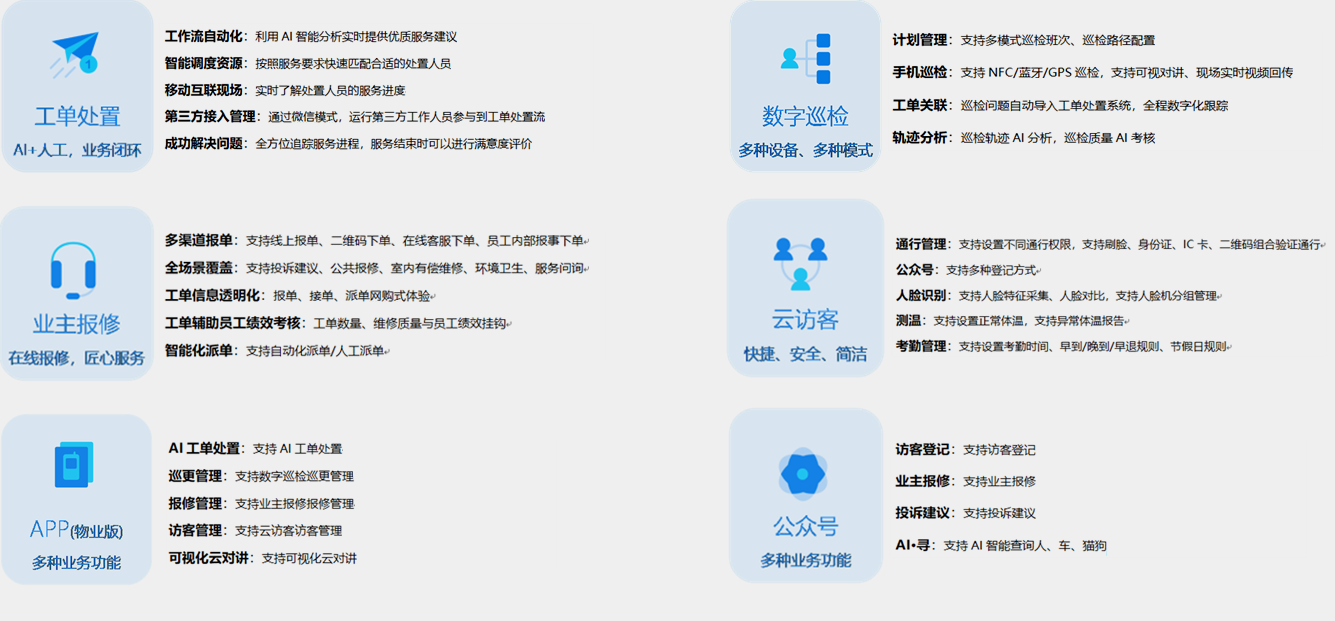 本方案通過AI技術(shù)的加載實現(xiàn)園區(qū)安防與園區(qū)管理應用的智慧化升級,提升園區(qū)安全等級和管理效率。將物聯(lián)網(wǎng)應用神經(jīng)延伸至園區(qū)各種業(yè)務(wù)場景,實現(xiàn)人、車、物數(shù)據(jù)信息線上融合與計算,為園區(qū)智慧化管理提供數(shù)據(jù)源。助力園區(qū)實現(xiàn)安全等級提升、工作效率提升、管理成本下降。